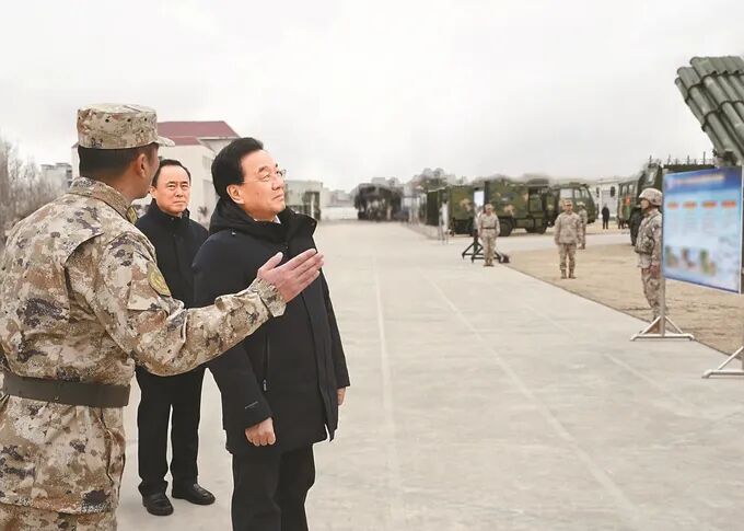 在第71集团军某旅,信长星观摩装备展示,对部队取得的优异成绩给予称赞。他说,强国必须强军,军强才能国安。希望大家紧贴使命任务加强实战化训练,锻造精武强能、敢打必胜的“火力铁拳”,在新征程上再创佳绩、再立新功。春节即将到来,信长星祝大家节日快乐,并请他们向家人转达诚挚问候。