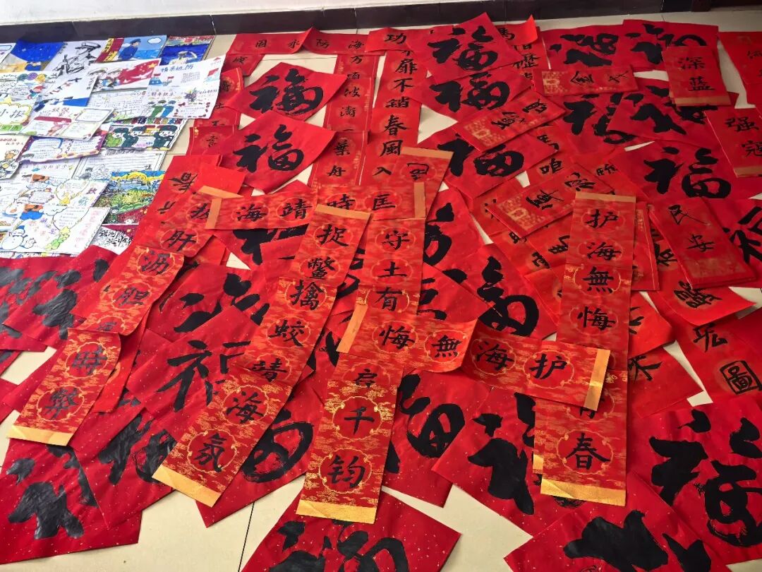 活动筹备中,区教委发动全区中小学校师生广泛参与。孩子们拿起画笔,用最纯真的方式表达对戍边官兵的敬意,一幅幅描绘雪域高原巡逻身影的绘画,一封封字迹工整、情感真挚的慰问书信,一张张手工绘制的贺年卡片饱含“少年心向党、强国我担当”的赤诚。师生们还专门为边海防官兵们书写春联福字,童真画作与翰墨书香交相辉映,承载着老区人民对边防子弟兵最深切的崇敬和牵挂。