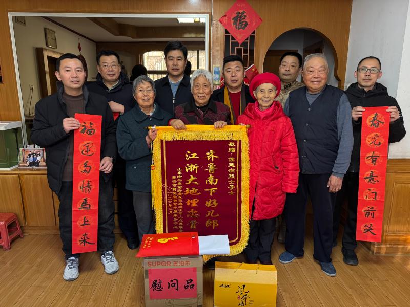 关爱烈属慰英烈。区退役军人事务局联合泰安市革命烈士陵园、泰前街道、泰安市三色旗退役军人志愿服务中心及泰安市贾美荣拥军优属服务中心精心开展“新春慰英烈 锦旗寄深情”活动,制作尊崇锦旗并携新春慰问物资慰问烈士遗属,与烈属促膝交谈,细致询问身体状况、生活起居及实际困难,认真倾听烈士的英勇事迹与家国故事,让烈士遗属切实感受到党和政府的牵挂与社会各界的尊崇。