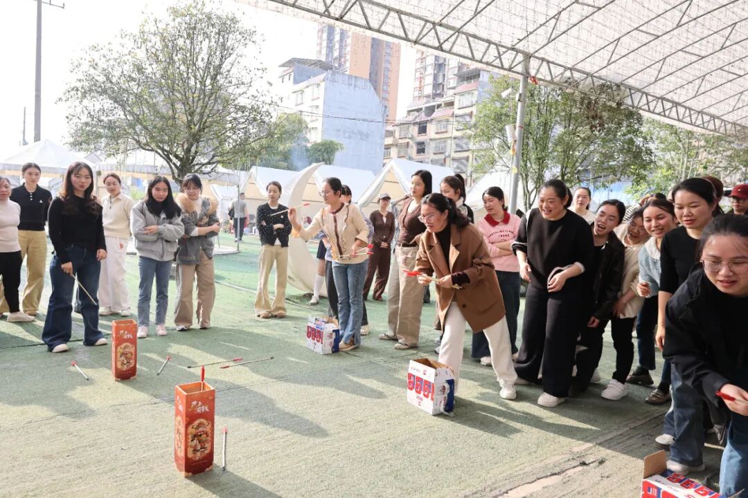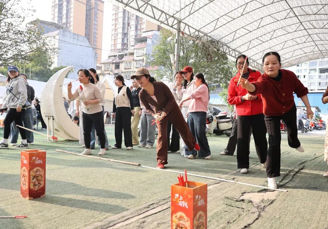 在石头剪刀布趣味比拼活动中,队员在指定区域猜拳,胜者即时食用水果,负者轮换队员;率先吃完本组水果的队伍获胜。马年投壶项目每队5人,每人投8支,投中1支计1分,总分高者胜出;若得分相同,则用时少的队伍获胜。活动现场秩序井然、氛围热烈。大家团结协作、奋勇争先,在互动中增进友谊,在竞技中凝聚合力,充分展现了医院女职工昂扬饱满的精神面貌。