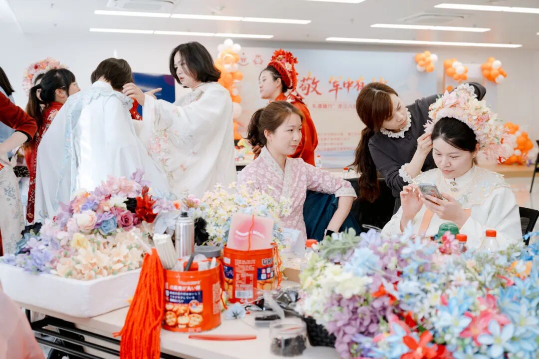 下午3时30分,活动进入特色体验环节。嘉宾们可自由选择“簪花换装留影”或“心理疗愈体验”。