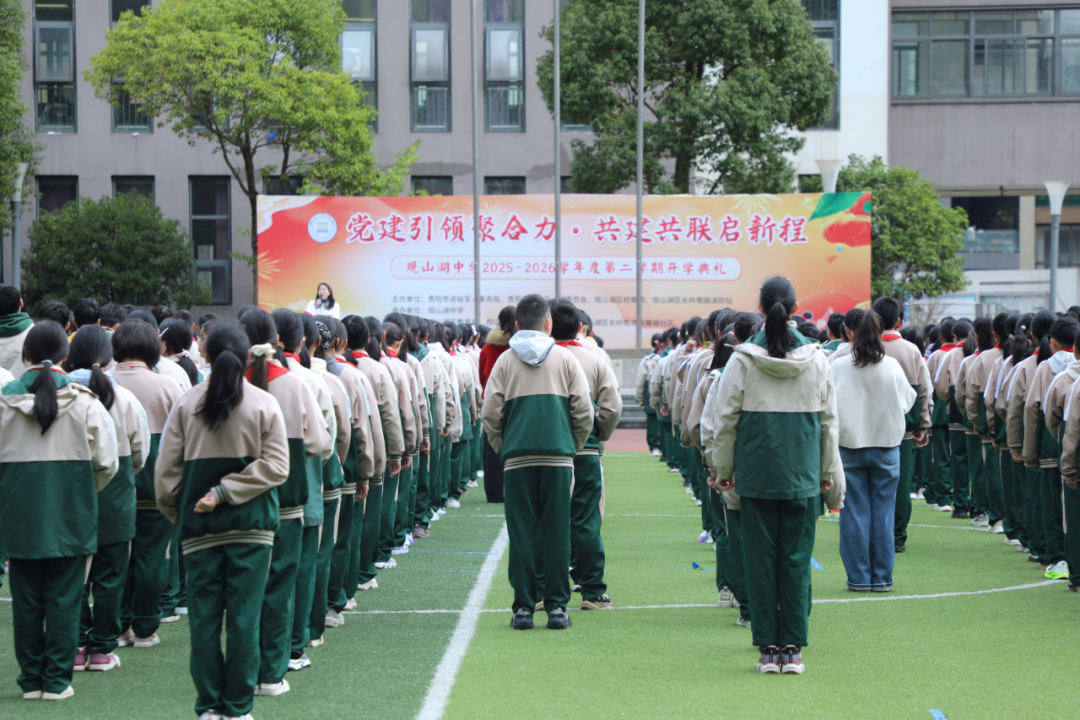 近日,贵阳市观山湖中学至善校区操场上,一场以“党建引领聚合力·共建共联启新程”为主题的春季开学典礼在晨光中拉开帷幕。这不仅是新学期的启航,更是一堂传承红色基因、凝聚榜样力量、厚植家国情怀的“开学第一课”。
