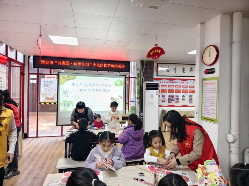 泉州团市委在托管服务中坚持立德树人根本任务,以“五育融合”为导向,构建起“思想引领+学业辅导+素质拓展+安全自护+文化传承”的多维课程体系。依托托管点位,泉州团市委开设“红领巾讲解员”训练营,厚植少年儿童的家国情怀;联动公安、消防等部门开展法治宣传和急救培训,提升孩子们的安全自护能力;融入南音、剪纸等非遗体验课程,增强少年儿童的文化认同,让孩子们在社区里轻松“扣好人生第一粒扣子”。