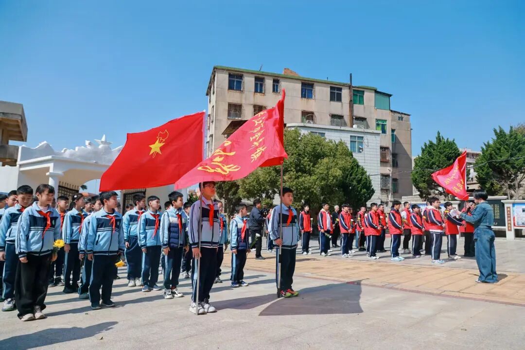 春日的金井革命烈士陵园松柏苍翠、庄严肃穆,上午十时,清明祭英烈仪式正式开始。全体人员整齐列队、昂首肃立,齐声奏唱中华人民共和国国歌,雄壮的歌声在陵园上空回荡,诉说着对英烈的无限崇敬。少先队员们身着校服、佩戴红领巾,用稚嫩而坚定的声音献唱《我们是共产主义接班人》,字字句句满是传承红色薪火的决心。
