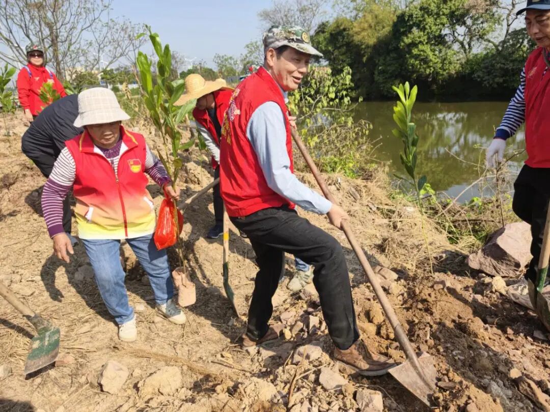 春风送暖,万物复苏。为深入贯彻绿美广东生态建设部署,积极推进绿美乡村建设,3月12日植树节当天,侨都星火江门市退役军人志愿服务队在市退役军人服务中心组织下,联合棠下镇石头村委会,在石头村开展植树节活动,以实际行动为家乡添新绿、筑美景。