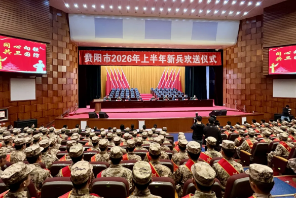 欢送仪式上,市征兵办副主任宣读了贵阳市2026年上半年征兵通令,军地领导为新兵代表发放入伍通知书、为退役老兵代表赠送鲜花,入伍新兵、退役老兵和新兵家属代表分别发言。