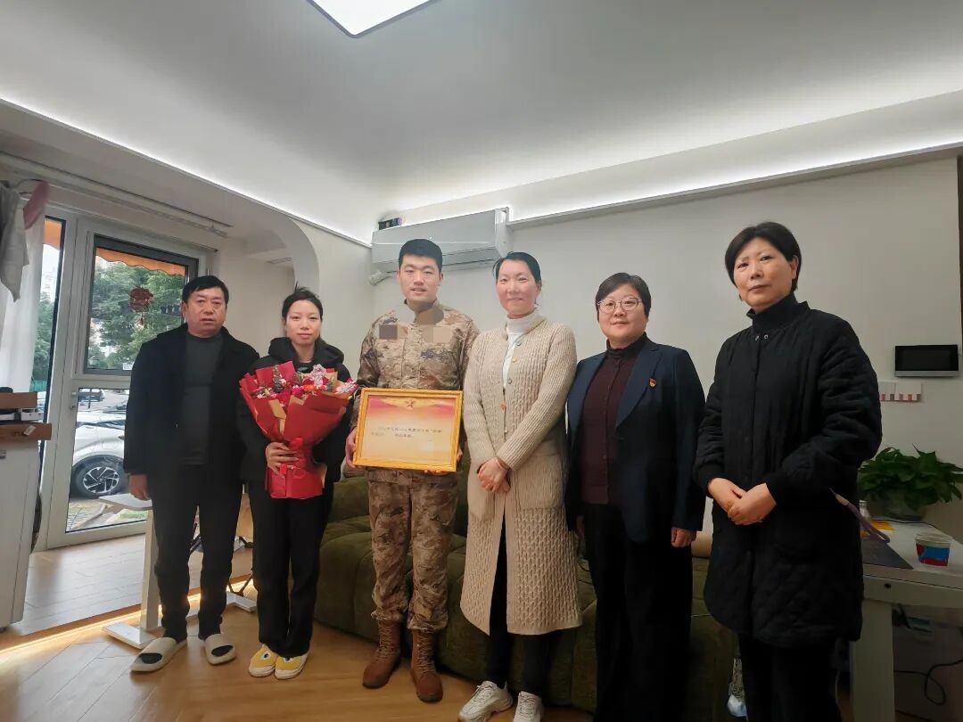 周家渡街道相关负责同志走进现役军人陈煜坤家中,为其家属送上“三级表彰”的立功喜报。工作人员与陈煜坤家属亲切交流,对他们支持国防事业、主动承担家庭责任的无私奉献精神表达了诚挚感谢。家属手捧喜报,表示会继续做好坚强后盾,鼓励亲人在军营中安心服役、奋勇拼搏、再创新功。