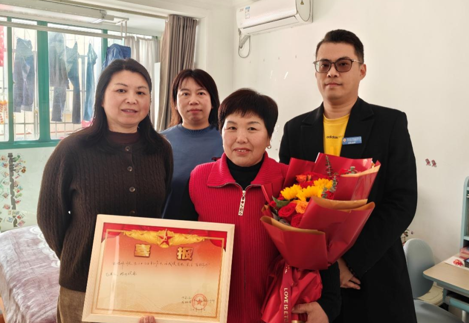 金桥镇相关负责同志来到现役军人陈德胜家中,为其家庭送上“四有”优秀军官喜报和鲜花。相关负责同志感谢他为国防和军队建设作出的贡献。现役军人陈德胜表示,这份荣誉的取得离不开部队的培养和地方党委政府的关心支持,今后将以此为新的起点,戒骄戒躁,再接再厉,争取在部队再立新功,为国防事业贡献更大力量。
