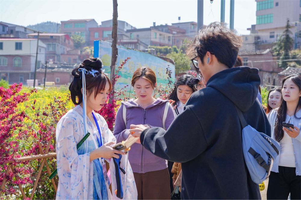 启动仪式结束后,备受瞩目的“虹山全域AI剧本游”暨“交个朋友”青年联谊活动随即开启。近800名参与者一边欣赏着虹山乡的绝美风光,一边破解剧本中的谜题,青年们在互动交流中增进了彼此的了解,在春日美景中收获友谊、共话青春,充分展现出新时代青年昂扬向上的精神风貌。