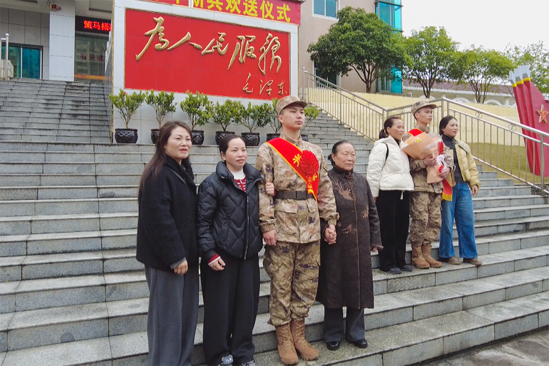欢送仪式上,新兵们整齐列队、英姿飒爽,展现出新时代福泉青年积极投身国防事业的坚定决心和昂扬风貌。出席欢送仪式的领导为入伍新兵佩戴红花,向他们表示热烈祝贺与崇高敬意。