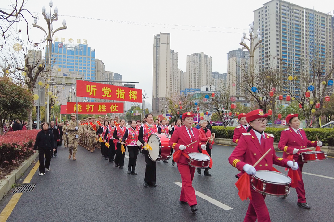 锣鼓铿锵颂壮志,青春逐梦踏征程。欢送仪式结束后,伴随着激昂的锣鼓声,胸带大红花的入伍新兵在亲友们的簇拥下,沿着城市主干道整齐列队、昂首前行。街道两旁,不时有市民驻足,向他们送上祝福。