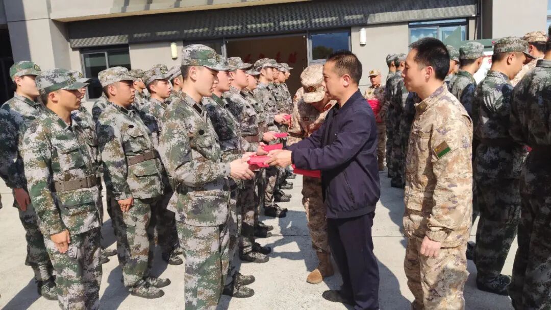 活动现场庄重热烈,新兵们精神抖擞、列队整齐。慰问组成员为每一位新兵送上纪念品,勉励大家牢记使命、不负重托。新兵们满怀憧憬,眼神坚定,展现出投身军营、报效祖国的昂扬风貌。