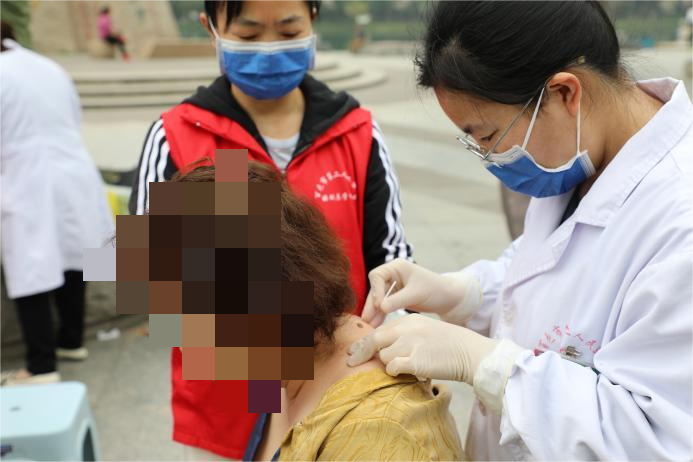 活动还免费进行小针刀治疗、血压测量和血糖检测等多项健康服务,医护人员手法娴熟、操作规范。现场为颈肩腰腿痛等各种痛症的群众进行小针刀治疗,缓解他们的身体不适。“我的颈椎疼了好长时间,今天做完小针刀治疗后轻松多了,真的非常感谢!”一位接受治疗的叔叔满意地说。同时,医护人员认真为每一位群众进行血压测量、血糖检测,详细记录检查数据,并结合检查结果为他们提供针对性的专业健康指导,用细致服务守护群众健康。