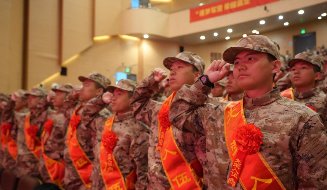“我是中国人民解放军军人,我宣誓……”入伍宣誓环节,新兵们高举右拳,誓言铿锵有力,表达了献身国防、报效祖国的坚定决心。