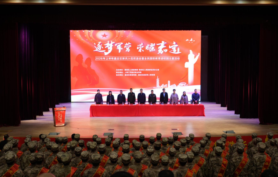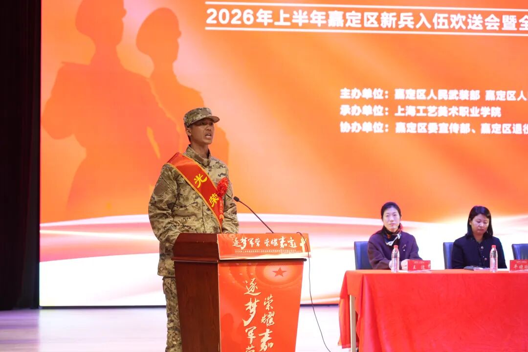 金戈铁马闻征鼓,少年立志赴军营。3月24日,“逐梦军营 荣耀嘉定”——2026年上半年上海市嘉定区新兵入伍欢送会暨全民国防教育进校园主题活动在上海工艺美术职业学院举行,为即将踏上军旅征程的优秀青年们壮行。