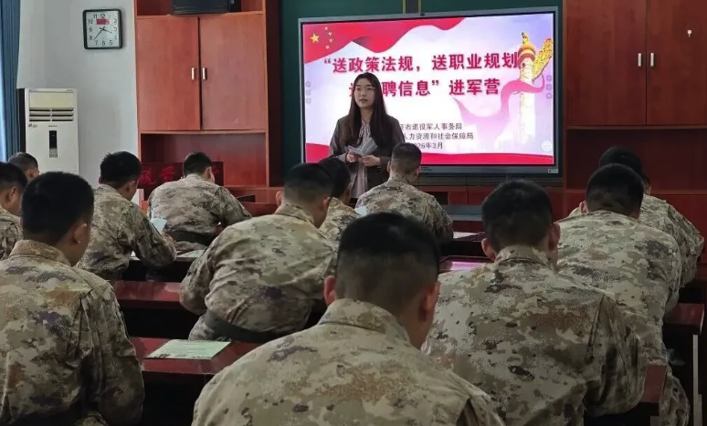 3月24日,江苏省仪征市退役军人事务局联合市人力资源和社会保障局,走进驻仪某部,面向即将退役的官兵开展“送政策法规、送职业规划、送招聘信息”进军营活动。