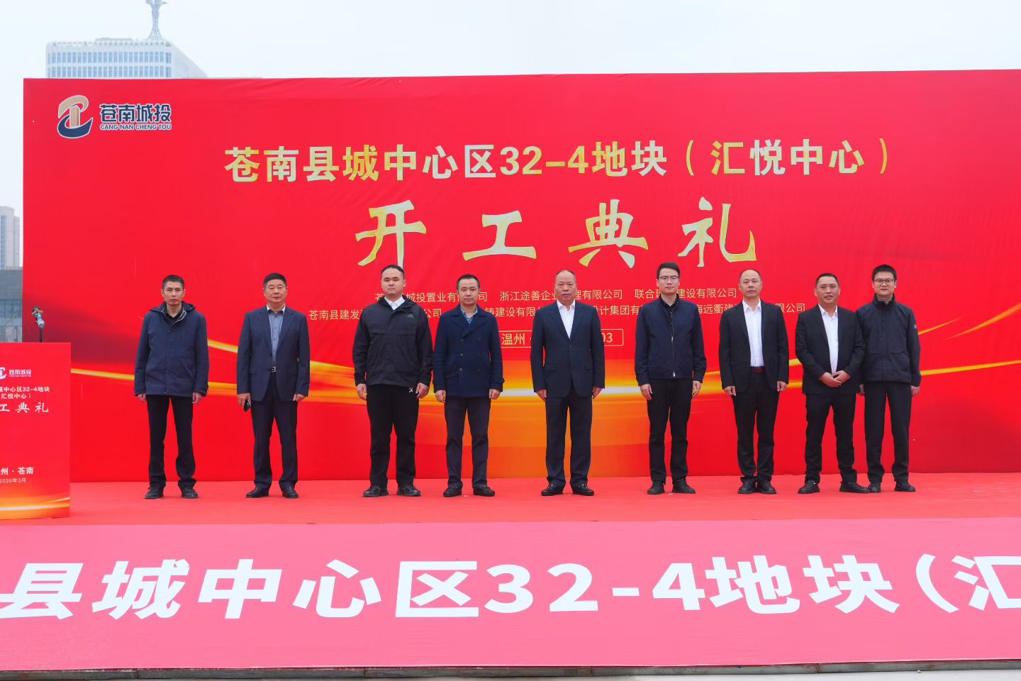 2026 年 3 月 28 日上午,苍南县城中心区32-4地块开工仪式盛大启幕。县城投集团作为项目开发主体,携手各参建单位代表齐聚现场,共同见证苍南城市能级跃升的里程碑时刻。礼炮轰鸣间,项目正式破土动工,这座以浙南首个开放式街区综合体为核芯标识,融合品质住宅、精品商业、现代办公三大高端业态的城市综合体,将为苍南CBD核心区强势注入发展新活力,擘画县域城市高质量发展的全新图景。