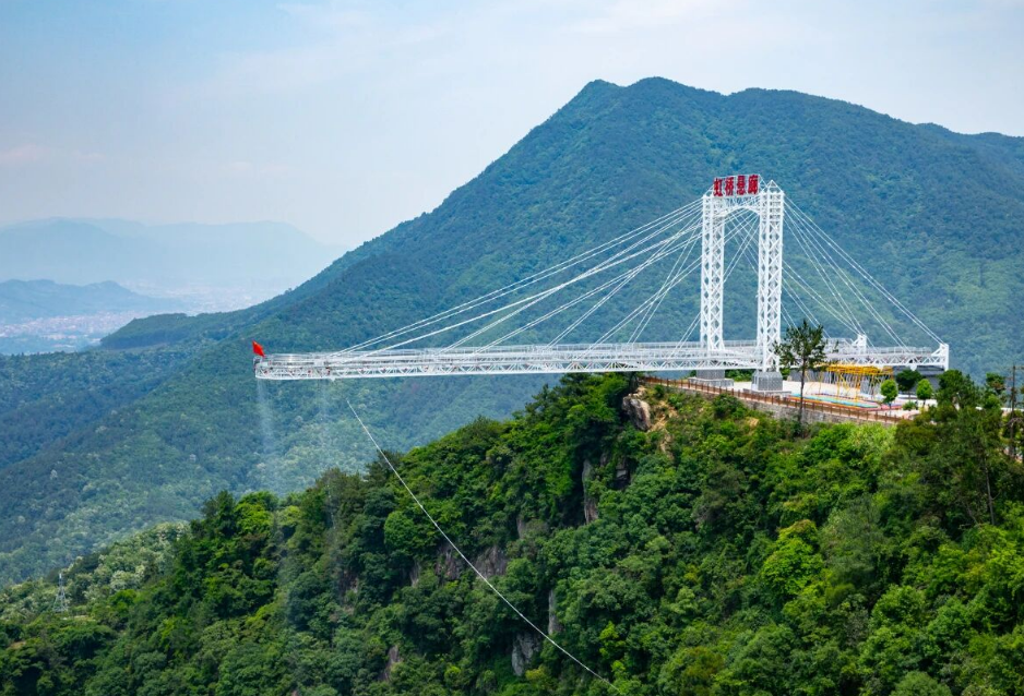 虹桥飞瀑景区,集森林康养、研学科普、惊险体验于一体,是洛江生态文旅的网红打卡地标。108米落差的彩虹瀑布飞流直下,景区斥资2000万元打造的高空玻璃悬廊,呈“U”型凌空挑出,总长108米,外挑78米,雄奇壮阔。