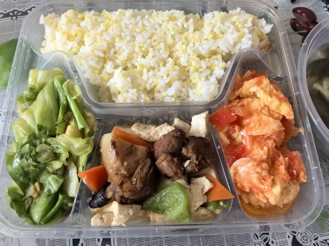 近日,稀土高新区万水泉镇万泉佳苑小区的独居老人张奶奶家的门铃准时响起。稀土高新区享你所想社区服务中心的工作人员提着保温餐盒进门,打开的瞬间,酸甜的西红柿炒鸡蛋、软糯的红烧肉炖豆腐、爽脆的炝炒罗马生菜搭配杂粮米饭的香气扑面而来。“平时一个人做饭,做多了吃不完,做少了又嫌麻烦,经常就对付一口。今天这菜合我口味,还热乎!”张奶奶捧着餐盒,眼角泛起笑意,连声道谢。