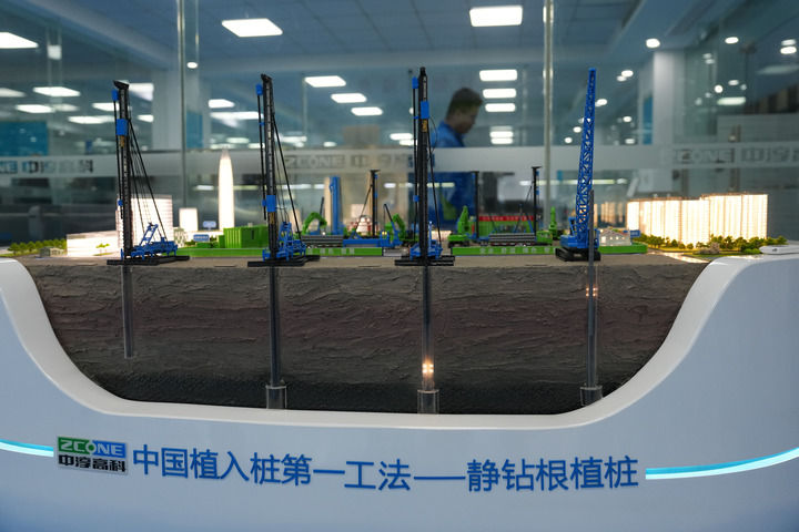 宁波中淳高科股份有限公司创新预制桩产品和技术展示模型(3月25日摄)。