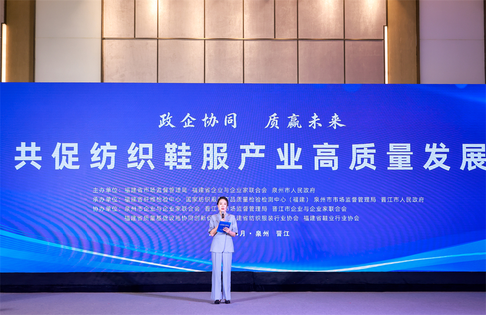 本次活动由福建省市场监督管理局、福建省企业与企业家联合会、泉州市人民政府联合主办,福建省纤维检验中心、国家纺织服装产品质量检验检测中心(福建)、泉州市市场监管局、晋江市人民政府共同承办,泉州市企业与企业家联合会、晋江市市场监管局、晋江市企业与企业家联合会、福建省质量基础设施协同创新促进会、福建省纺织服装行业协会、福建省鞋业行业协会协同协办。(陈玉明、张族浩)