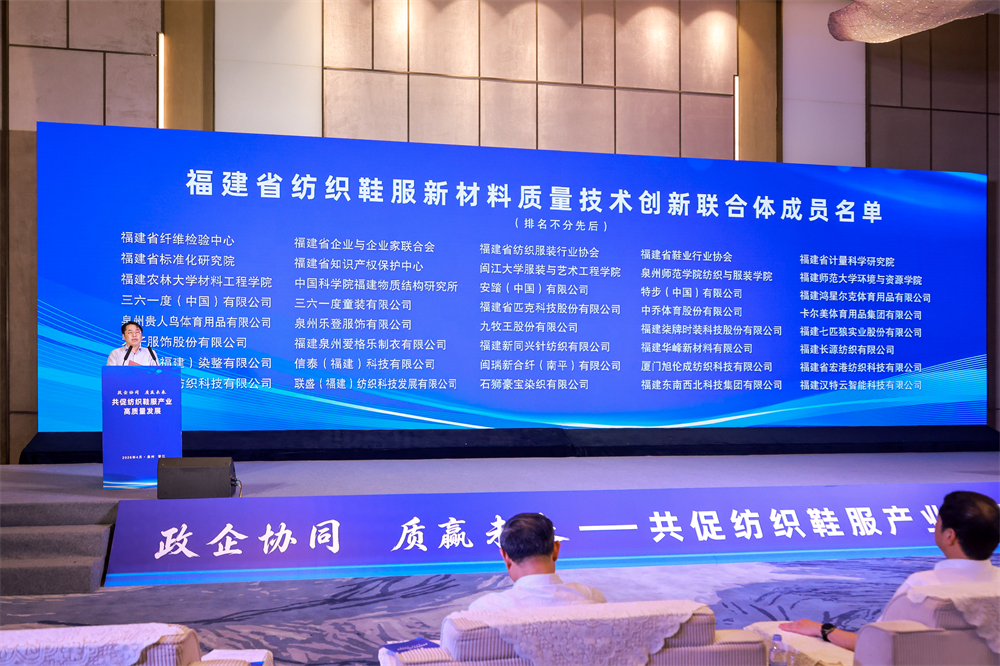 独行快,众行远。产业高质量发展,离不开政产学研用协同创新的强大合力。活动现场,由40家知名企业、高等院校、专业技术机构共同发起的纺织鞋服新材料质量技术创新联合体正式成立。联合体汇聚各方精锐力量,聚焦高端产品研发、关键技术攻关、成果中试验证,全力打通创新链条、破解技术瓶颈,推动创新资源高效整合、优势互补,构建起协同高效、互利共赢的产业创新生态。