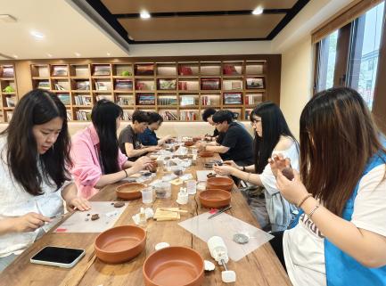 特色体验活动亮点纷呈,兼具知识性与趣味性。非遗传承类活动成效显著,“本草承非遗,匠心绘传承”中医药拼贴画、“篆香承古韵,匠心传非遗”体验、“宋韵雅香”古法香牌研学、“瓷韵传千年,匠心拼非遗”青花瓷拼贴画、“螺钿映光影,巧手筑雅境”螺钿画创作、“根承千年艺,巧手赋新生”根雕体验等,让古老技艺在指尖流转、在当代焕彩。