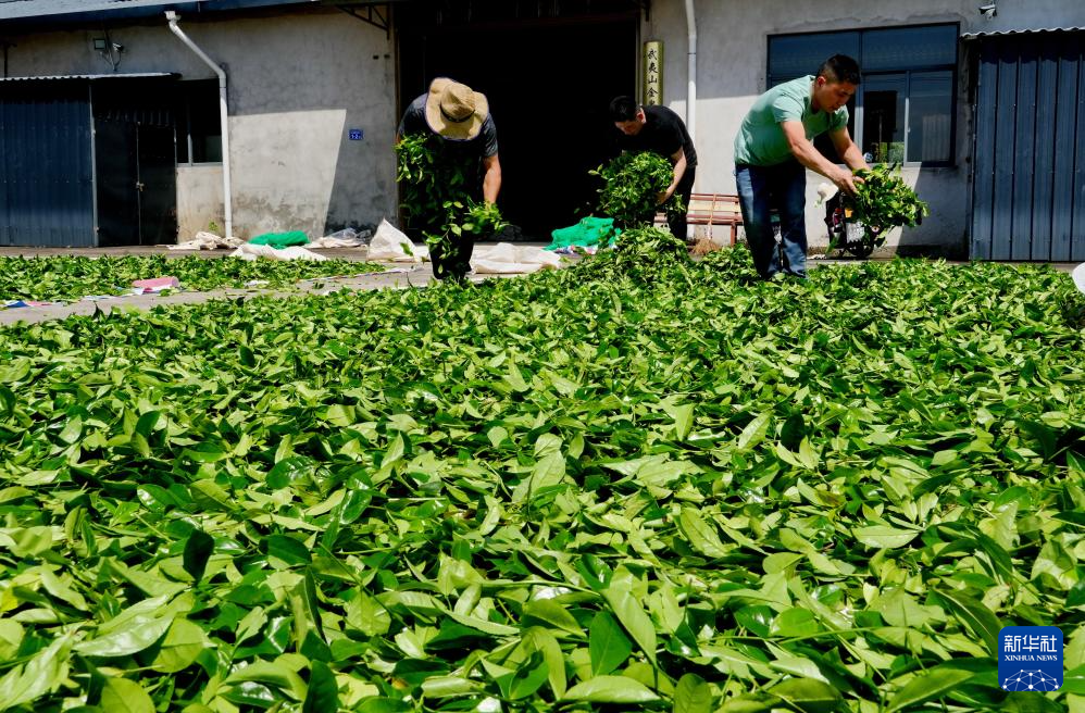 4月19日,武夷山茶农把刚采摘下来的青叶进行晾晒。
