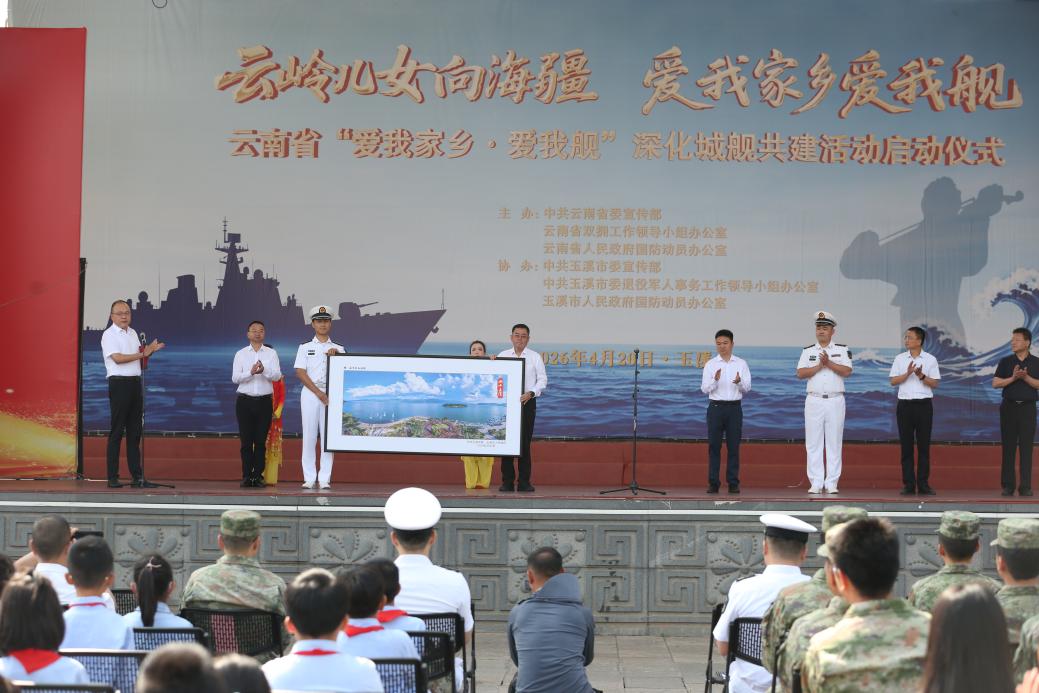 碧海守初心,高原系海疆。在中国人民解放军海军建军77周年来临之际,4月20日,云南省“爱我家乡・爱我舰”深化城舰共建活动启动仪式在玉溪市隆重举行。本次活动以“云岭儿女向海疆・爱我家乡爱我舰”为核心主题,以城市命名战舰为情感纽带与合作桥梁,紧密联结云岭高原与万里海疆,全方位推动军地共建共享、深度融合,持续巩固新时代军政军民团结的生动局面。