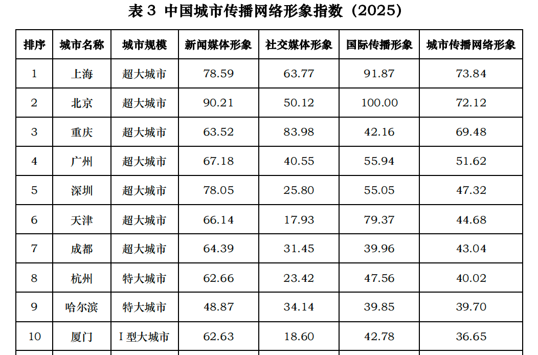 《中国城市网络形象指数报告(2025)》发布!厦门以“高颜值+国际范”长红出圈