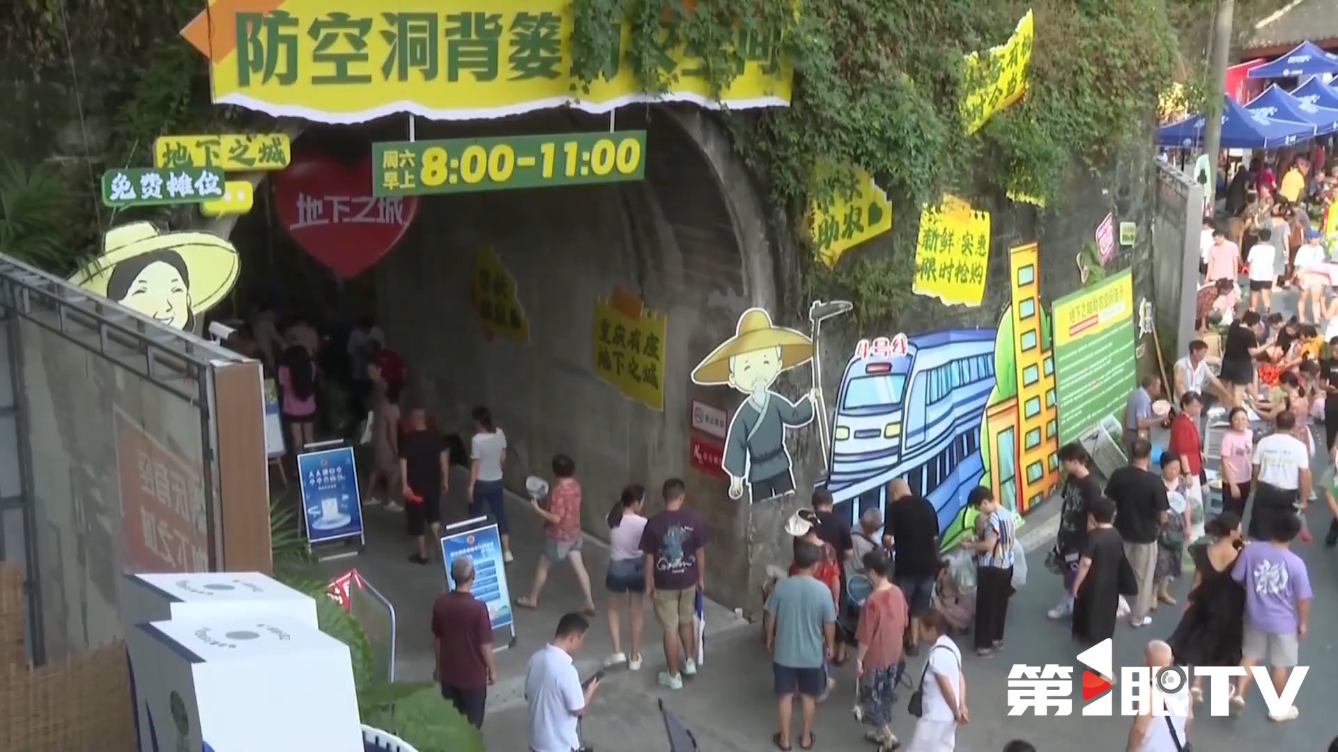 重点照顾,不仅是背篓专线上工作人员给力的“搭把手”、车厢广播新增的方言报站,还在于背篓专线之外。红土地站外步行五分钟处,有为菜农们专设的菜市场,这里不收摊位费、清洁费,外面再热里头也凉快,来买菜的居民也很多。