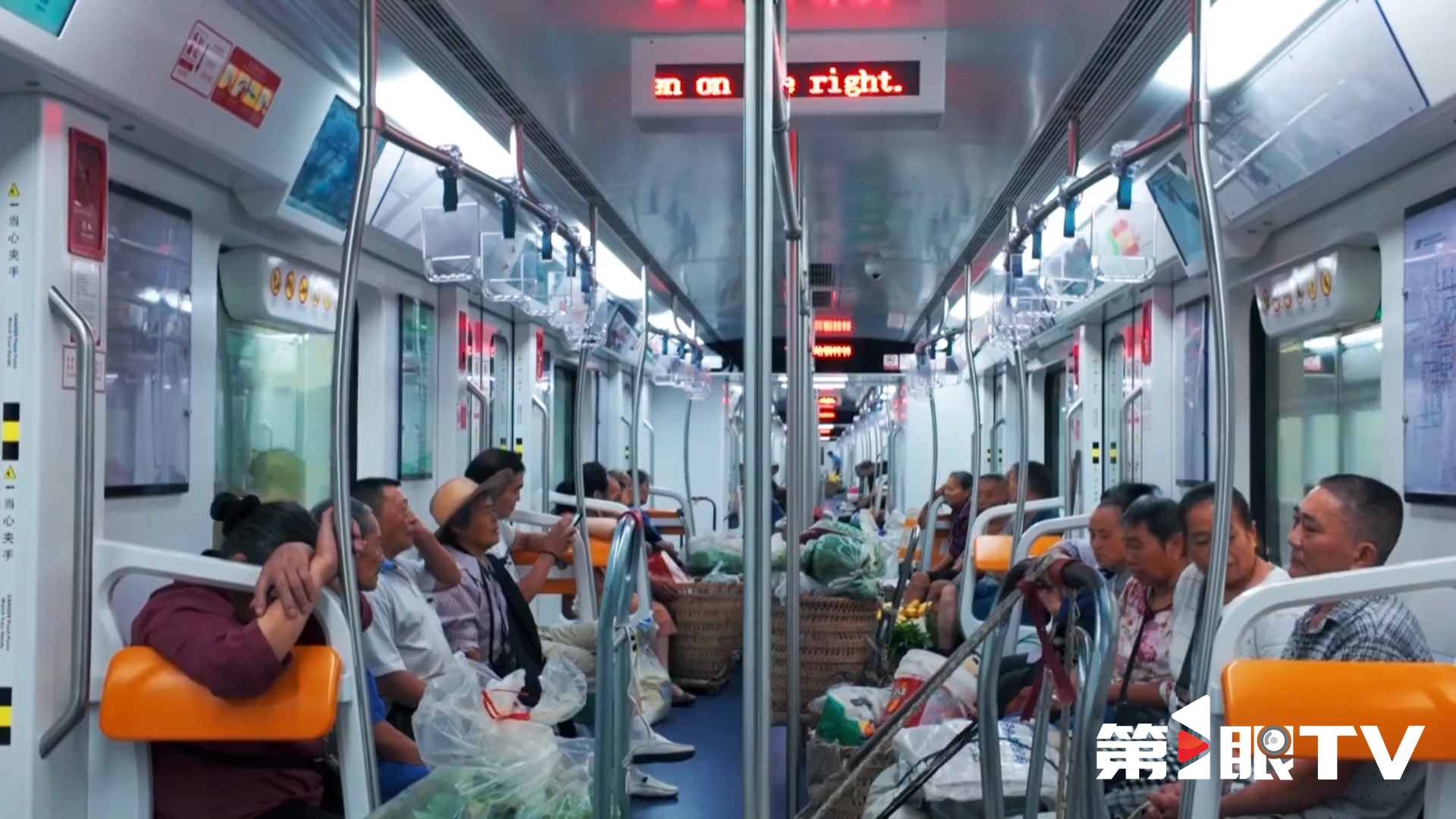 “背篓车厢,请从5-12号门上车。”轨道站台屏蔽门上有这样提醒的小牌子。这几个车厢也是为了方便菜农们设置的,是距离电梯口最近的车厢。